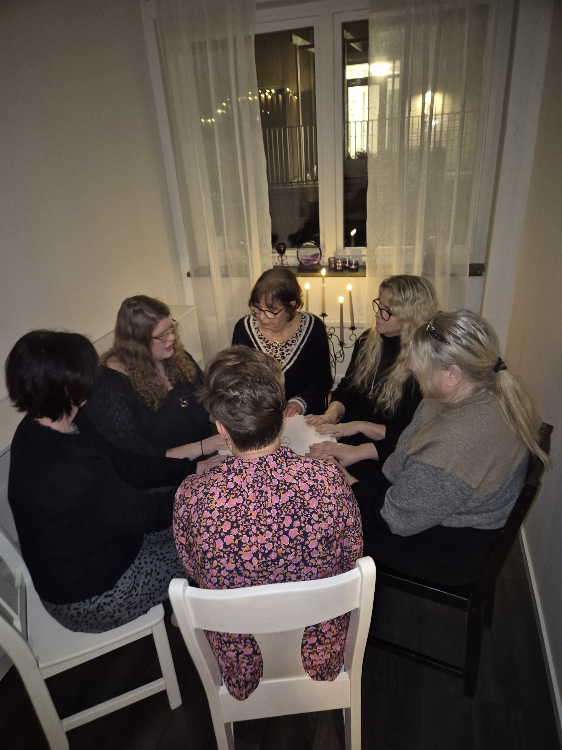 En av kvällens mest magiska stunder var andebordsseansen. Genom denna ceremoni fick vi möjlighet att kommunicera med våra guider och andravärlden. Budskap fulla av kärlek, visdom och klarhet flödade fram. Många av oss kände en djup kontakt med något större, och det blev en stund av både tårar och skratt när vi tog emot budskap från nära och kära på andra sidan. Det var en påminnelse om att vi aldrig är ensamma, att våra guider alltid finns där för oss.