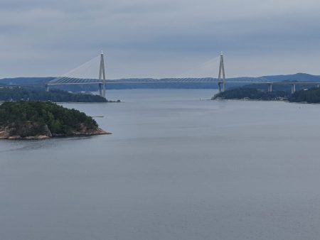 Vi hade en fantastisk utsikt över den nya bron mellan Göteborg och Oslo, kvällstid efter att vi hade avnjutit en buffé av olika maträtter och desserter.