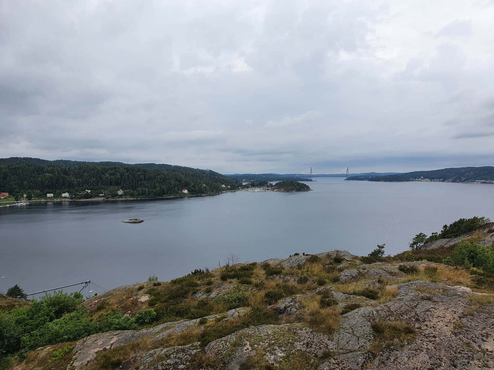 Vi hade en fantastisk utsikt över den nya bron mellan Göteborg och Oslo, kvällstid efter att vi hade avnjutit en buffé av olika maträtter och desserter.