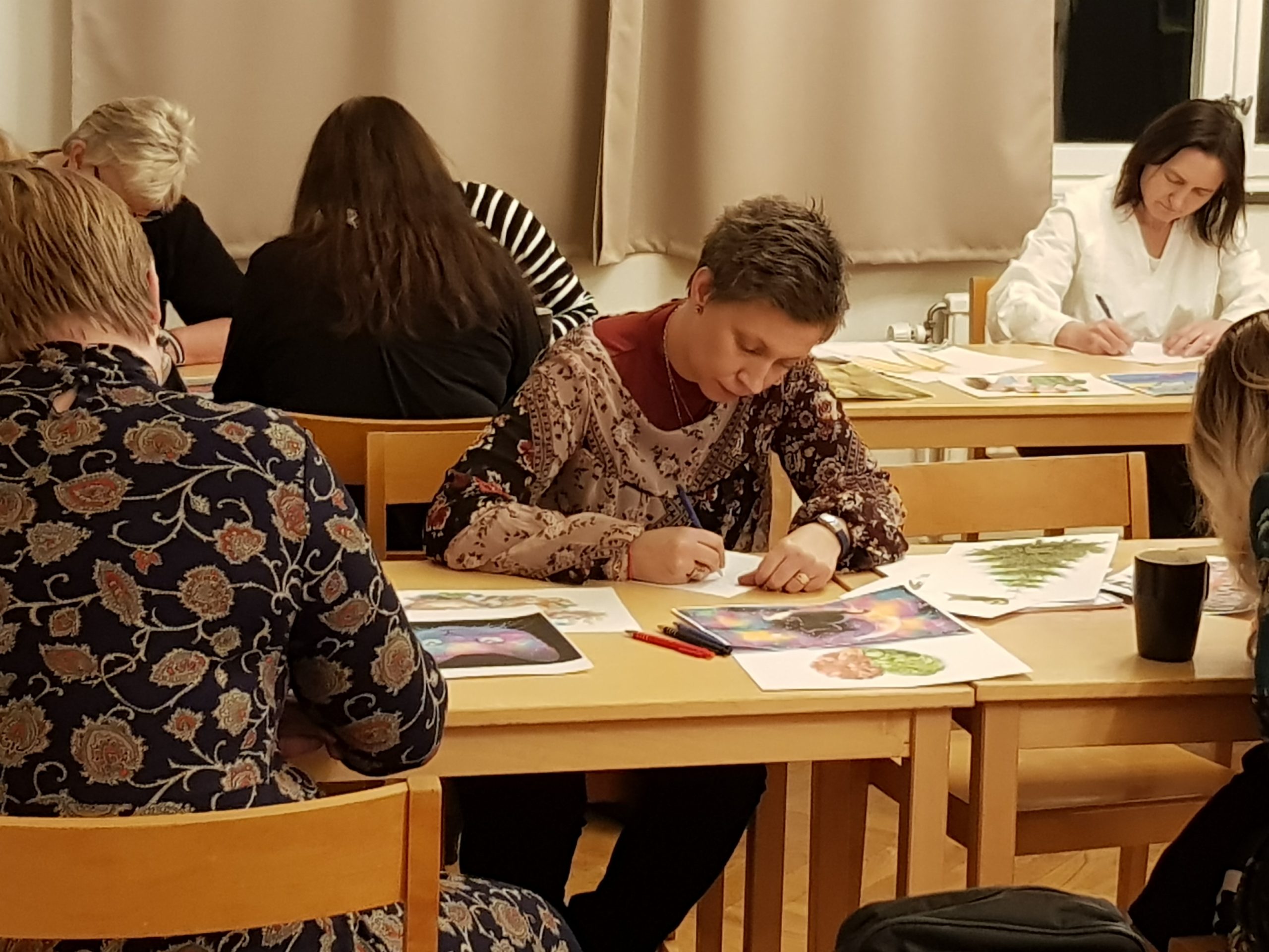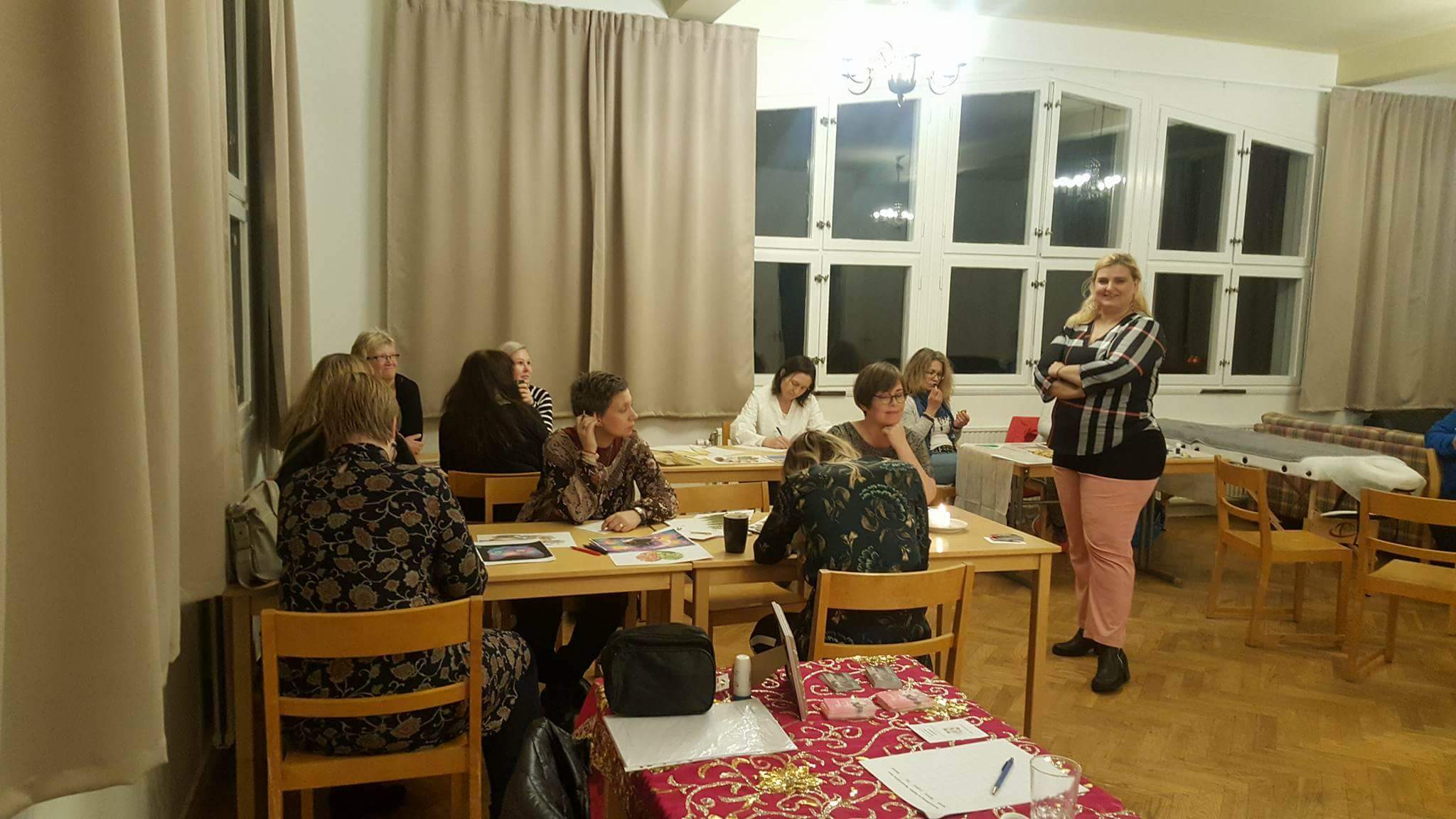 Yvette tog oss med på en inre resa i NLP Hypnosens värld, där vi släppte allt och bara följde med på resan som tog oss bortom tid och rum. Där vi blev fullständigt avslappnade och bara var i nuet – en välbehövlig stund i dagens stressade samhälle där vi blev påminda om hur viktigt det verkligen är att bara stanna upp och känna in, varva ner och bara vara. Hon gav oss också ett smakprov på hur vi kan lära oss att skriva intuitivt bara genom att titta på bilder med olika motiv och hon blev förvånad över hur fantastiska texter nästan samtliga i gruppen skrev ihop på bara dryga 15 minuter. Underbara berättelser och texter som var en fantastisk början på just deras bok.