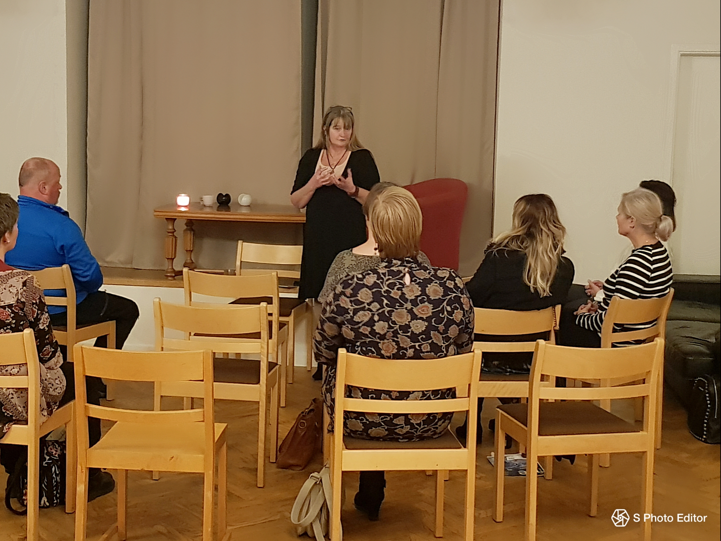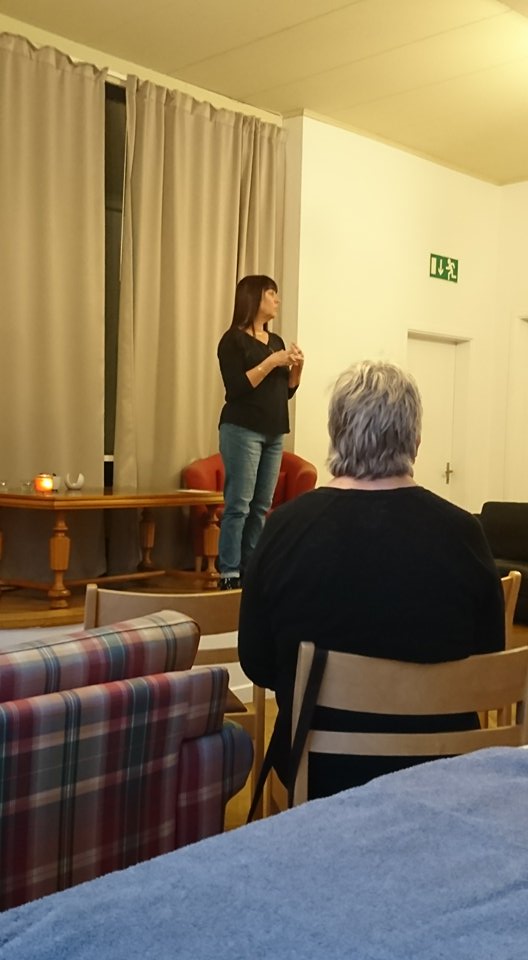 Kvällen startade med en presentation av värdinnan Carina Hammarsten, Spirituellt.nu där hon berättade om Reiki healing och hur den gjort hennes svåra, kroniska Fibromyalgi så fantastiskt mycket bättre och med hjälp av meditation också lyckats att varva ner kroppen till ett läge där den har haft möjlighet att läka sig själv, inifrån och ut. Med etta kom också den personliga utvecklingen och hennes vision om att starta eget och hjälpa andra människor i samma situation och på den vägen är det.