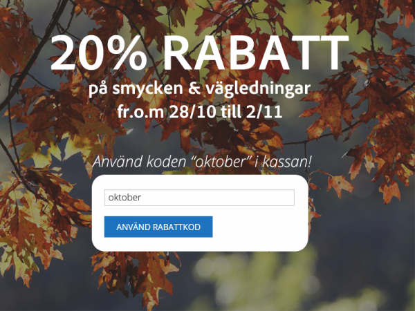 Behöver du en vägledning eller söker du ett energifyllt smycke? Vi erbjuder just nu 20% rabatt på ALLA smycken & vägledningar! Rabatten gäller fram till den 2/11 (på söndag). Välkommen in för att använda dig av rabatten i butiken och beställ våra fina smycken och någon av våra olika vägledningar vi har att erbjuda dig. […]