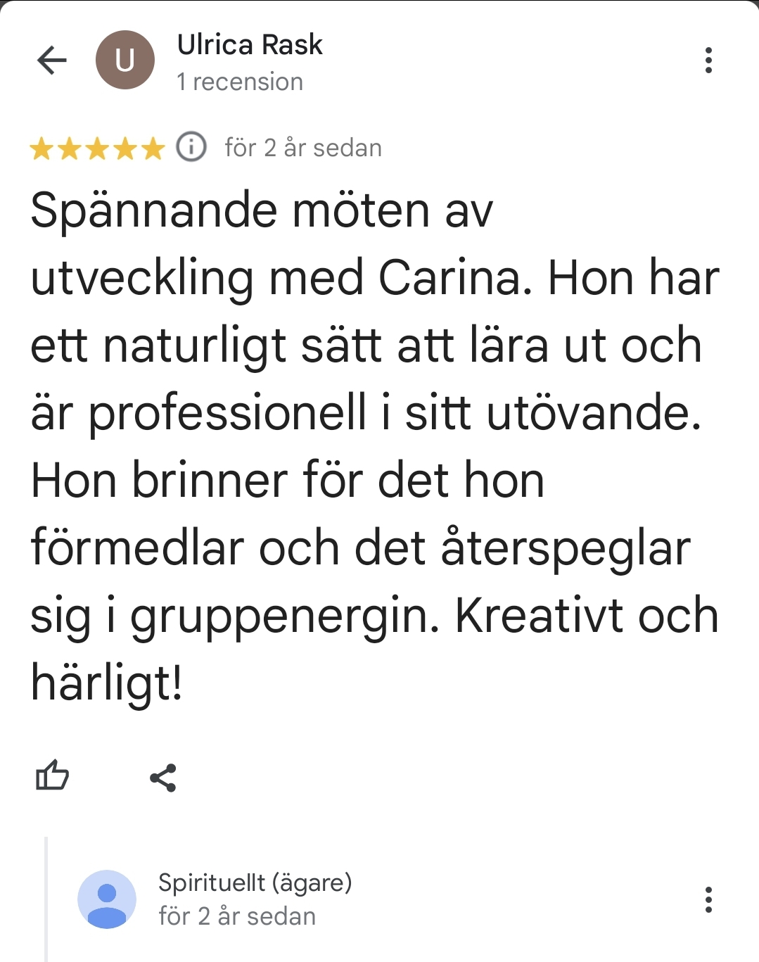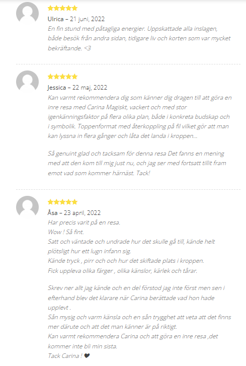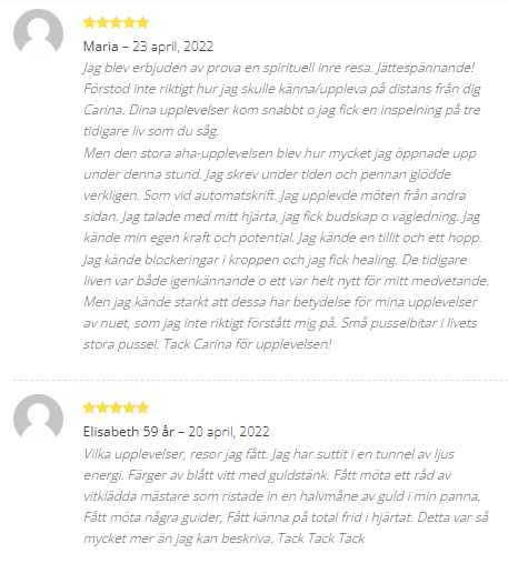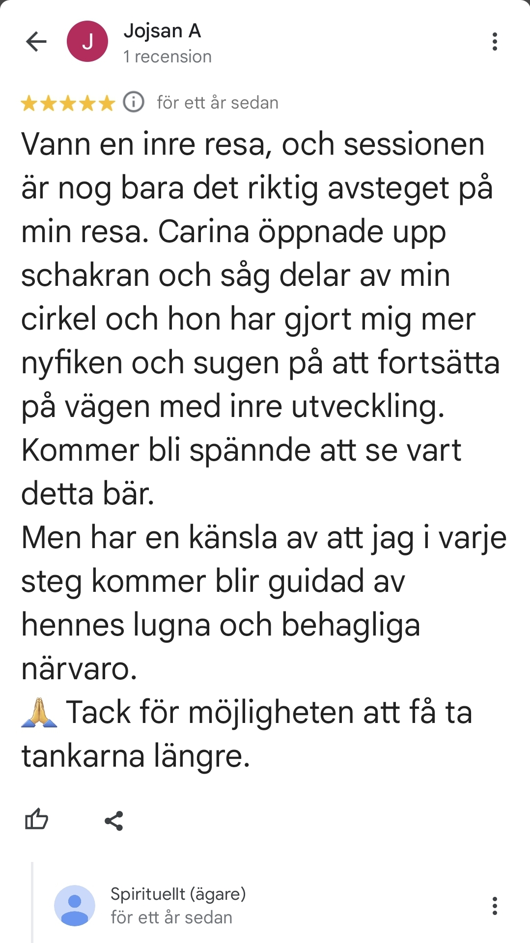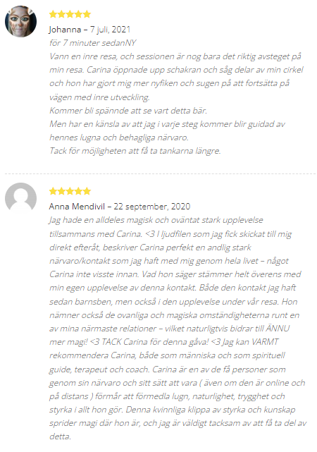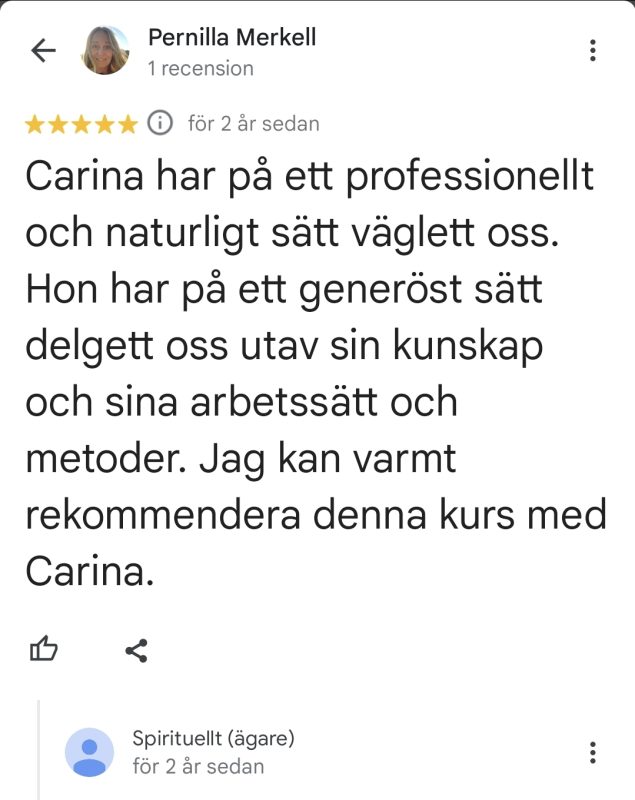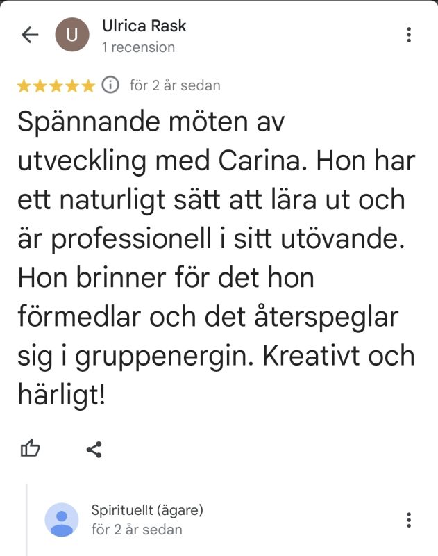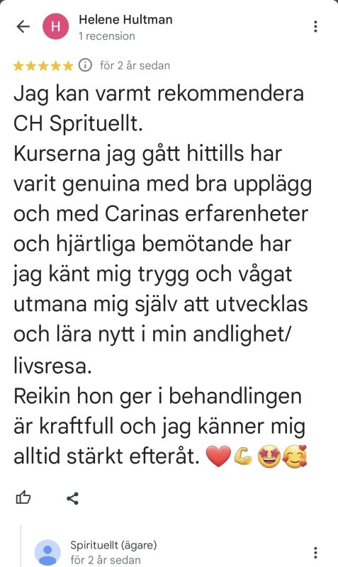 Underbart med all feedback som jag får för mina tjänster och kurser på Spirituellt.nu