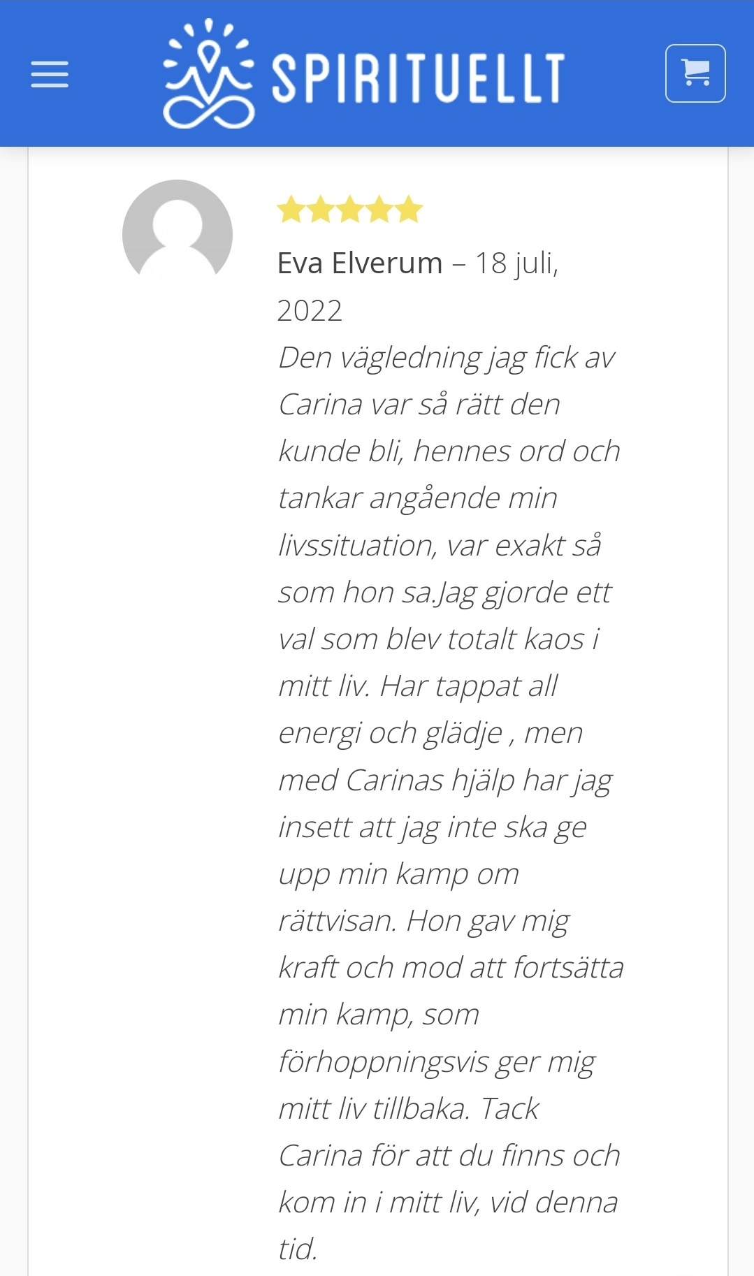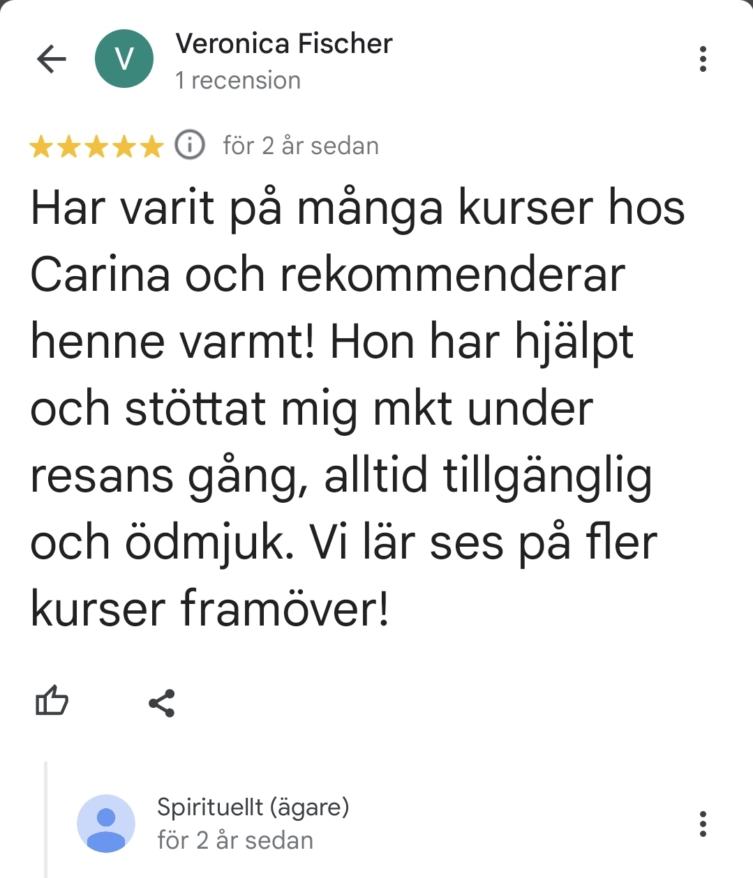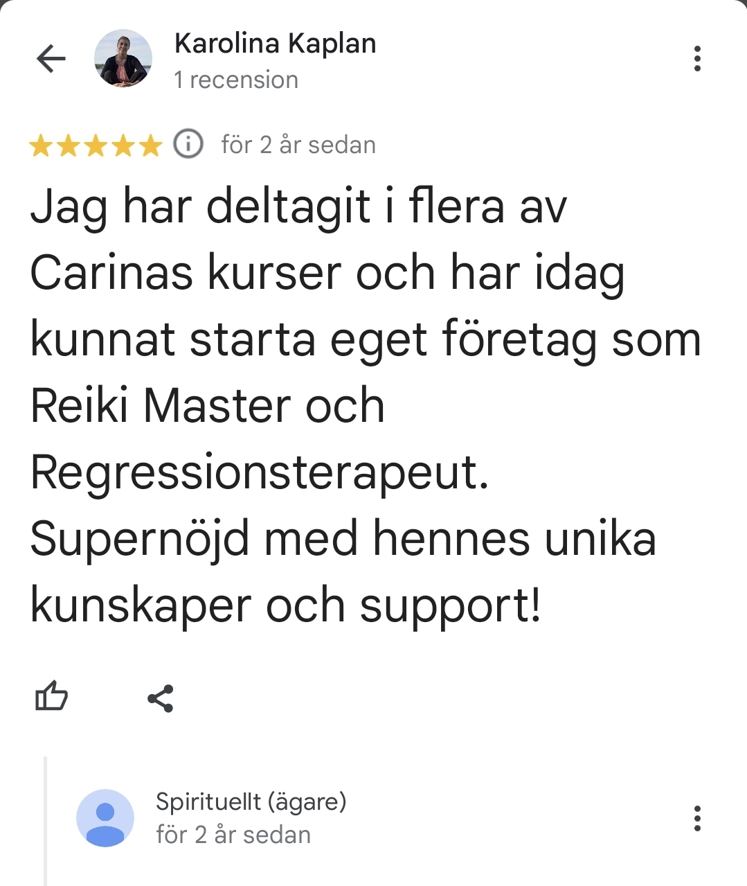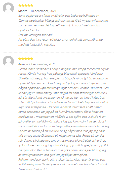 Underbart med all feedback som jag får för mina tjänster och kurser på Spirituellt.nu