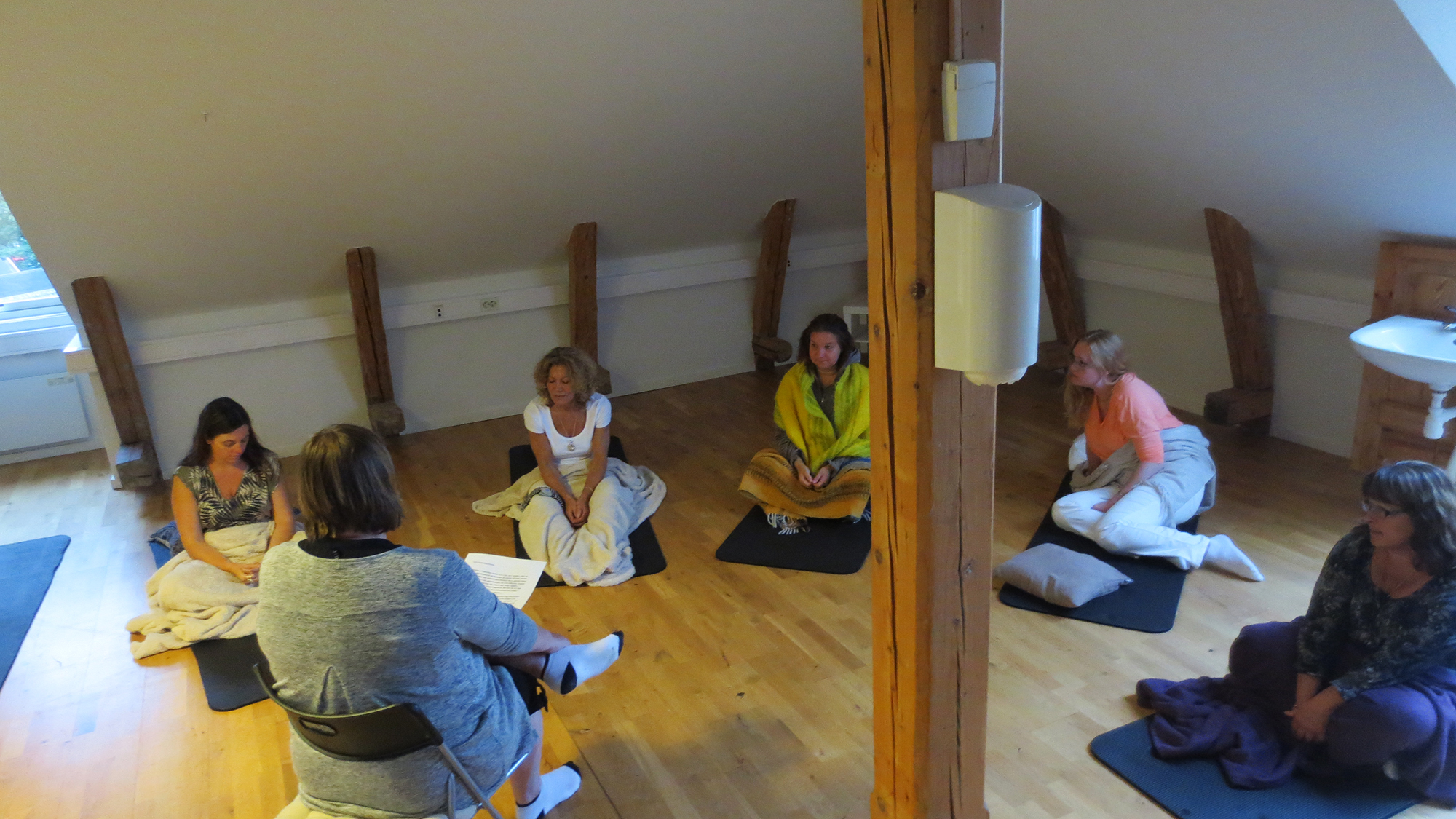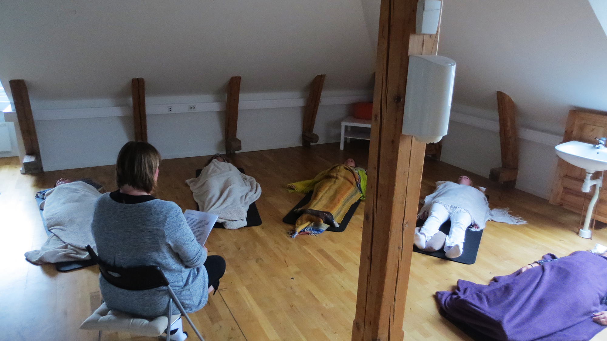 Birgitta förklarade hur en regression går till, vad man kan uppleva, hur det kännas och vad man kan få vara med om. Hon tog oss ner till en trappa, där trappan bestod av tio steg nerför en upplyst väg av lampor på sidorna och längst ned skulle man välja en av flera dörrar och gå in genom den. Sedan gjorde man en inre resa på sin väg bakåt i tiden. Fantastiskt intressant måste jag säga.