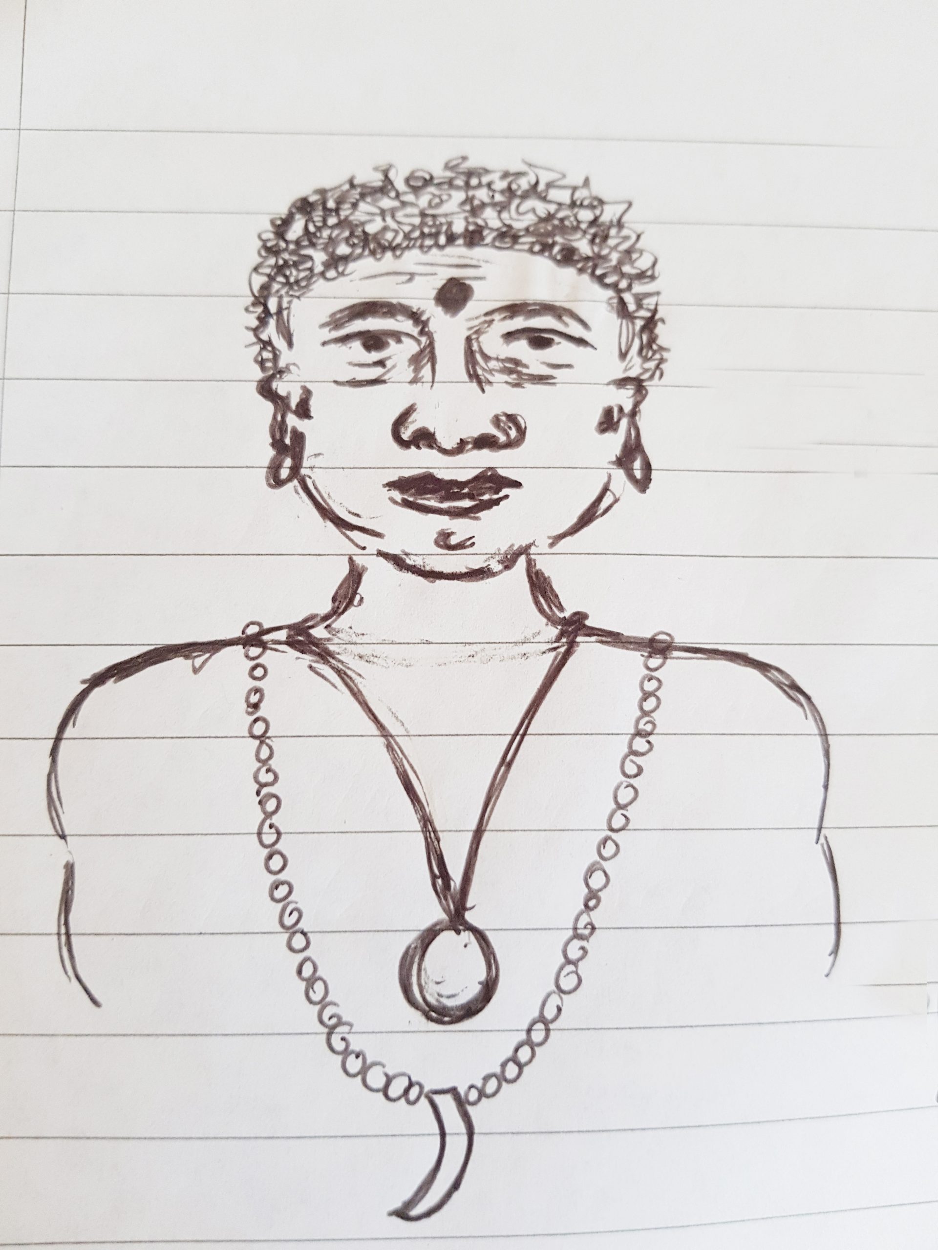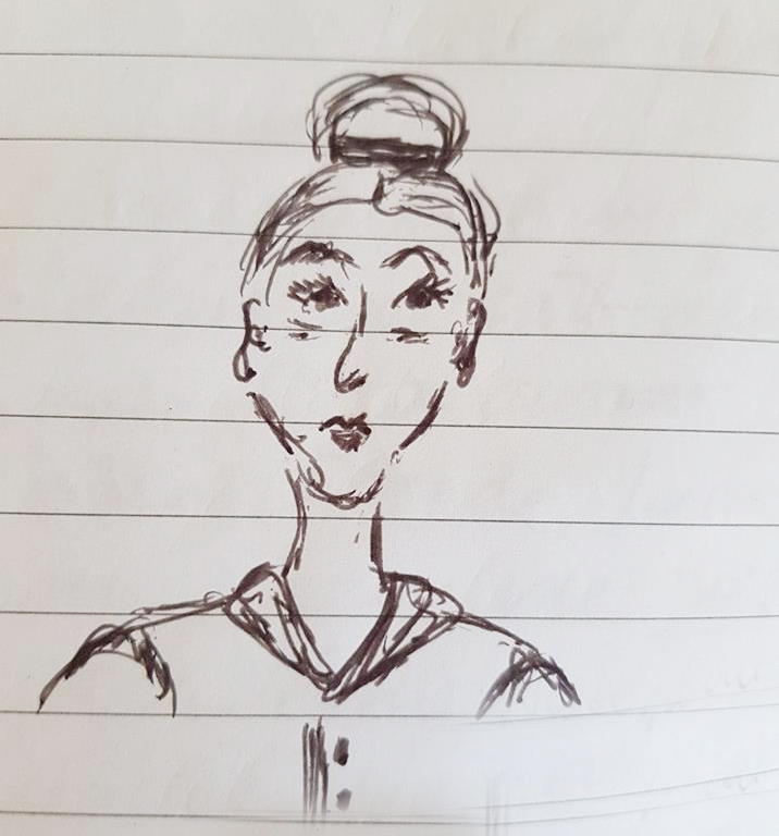 Varje dag började med en morgon meditation för att komma i stämning, varva ned inför healing arbetet under dagen och denna meditation hölls i the sanctuary på skolan, ett rum fyllt av energi, kärlek och avkoppling, som spred sig genom rummet när vi satte oss i vår meditation, som hölls av lärarna. Dessa meditationer vart helt fantastiska och det dröjde inte länge förrän man var helt uppslukad av dessa underbara och kärleksfulla energier som spreds i rummet till var och en av oss. Bäst av allt var att man fick kontakt med sitt Spirit team och för första gången fick jag en klar bild av hur de såg ut. Eftersom jag gör psychic art / spirituell art sedan 25 år tillbaka så hade jag hade naturligtvis penna och papper med mig och tur var det för nu kunde jag direkt efter meditationen sätta mig och snabbt teckna ner dem jag sett. En av dem var en äldre kvinna, lång, smal, med grått hår uppsatt i en knut uppe på huvudet, hon var smal i ansiktet med ljusblå ögon och en lite längre rak näsa och en liten mun.