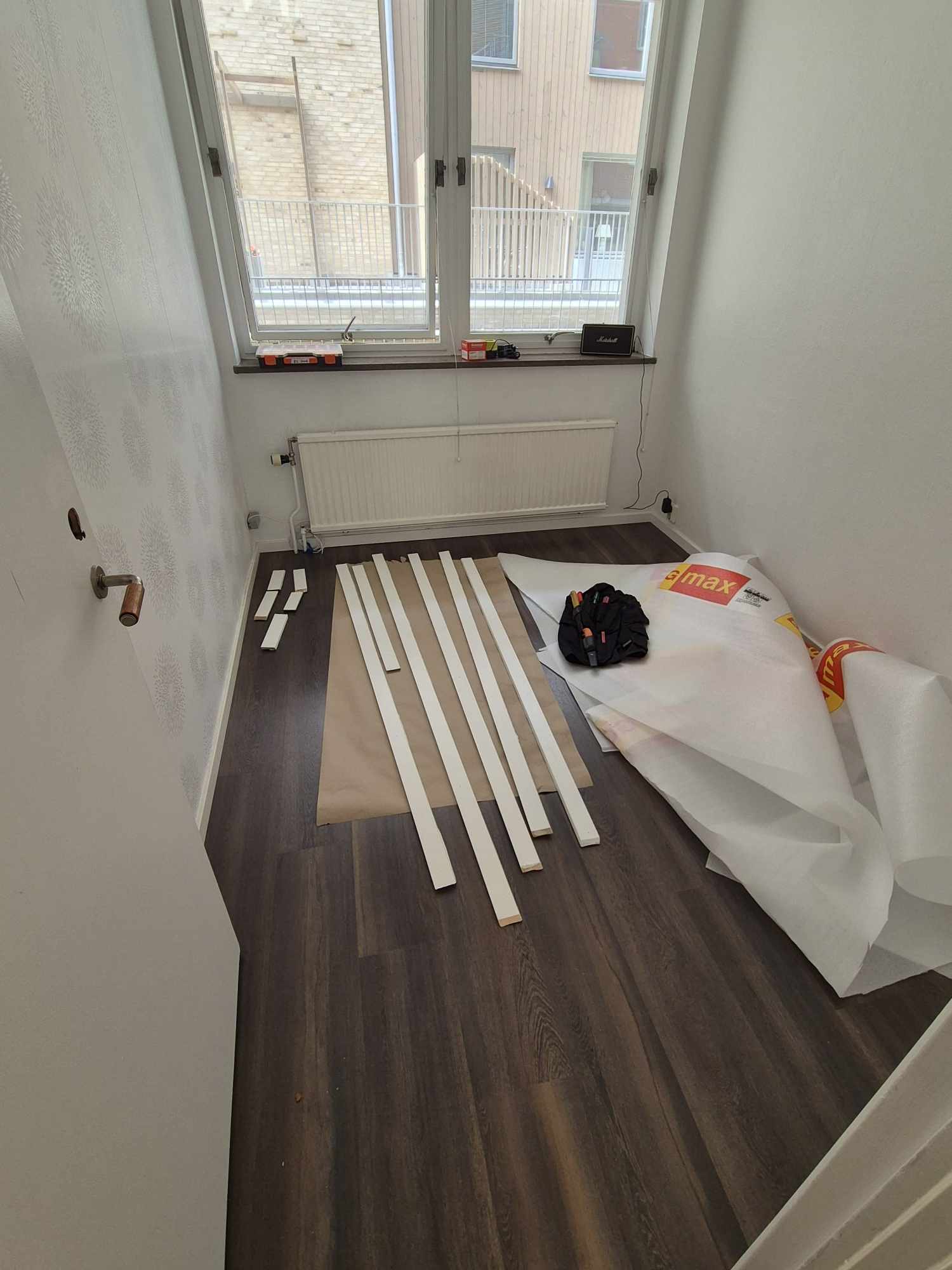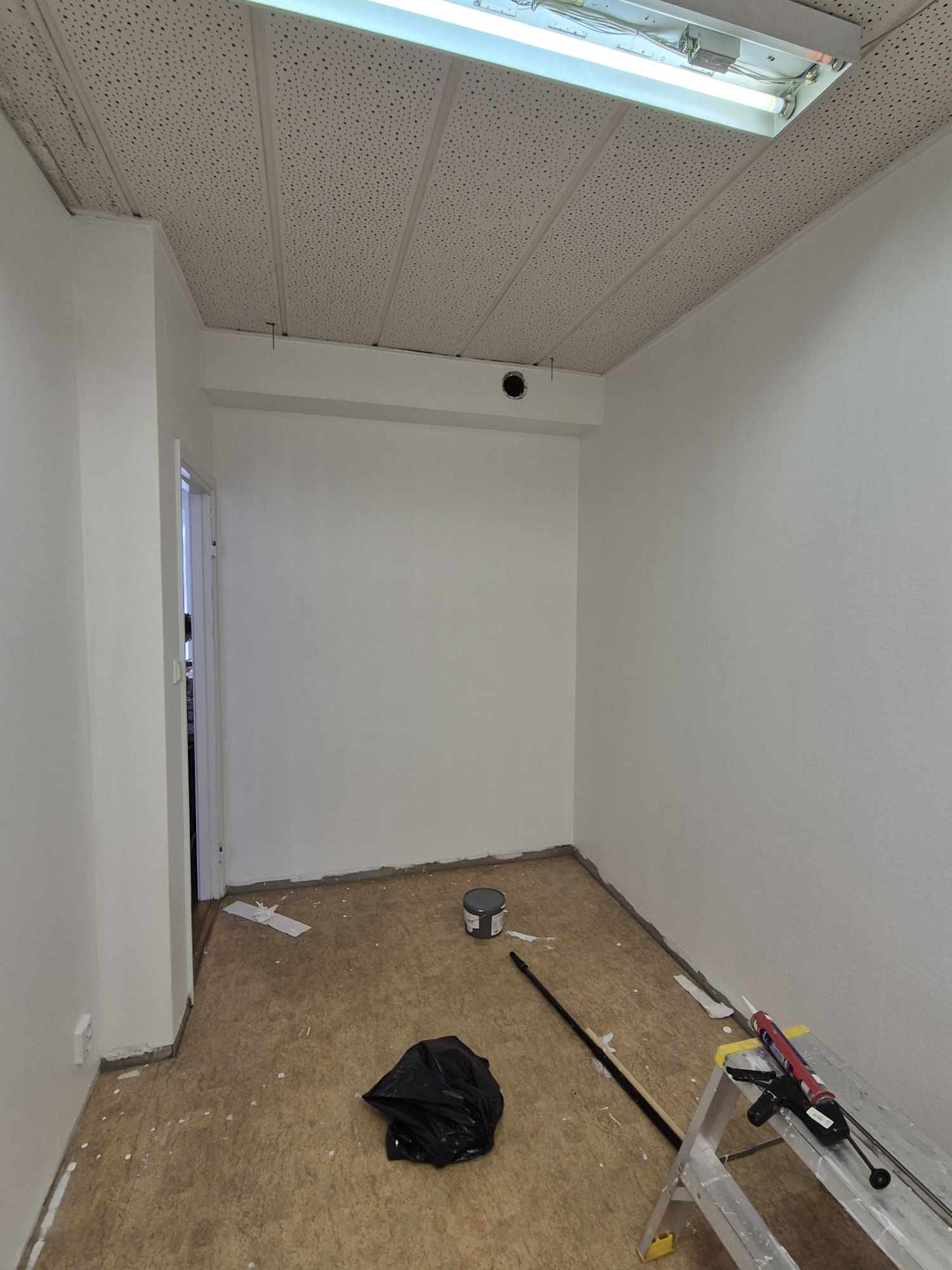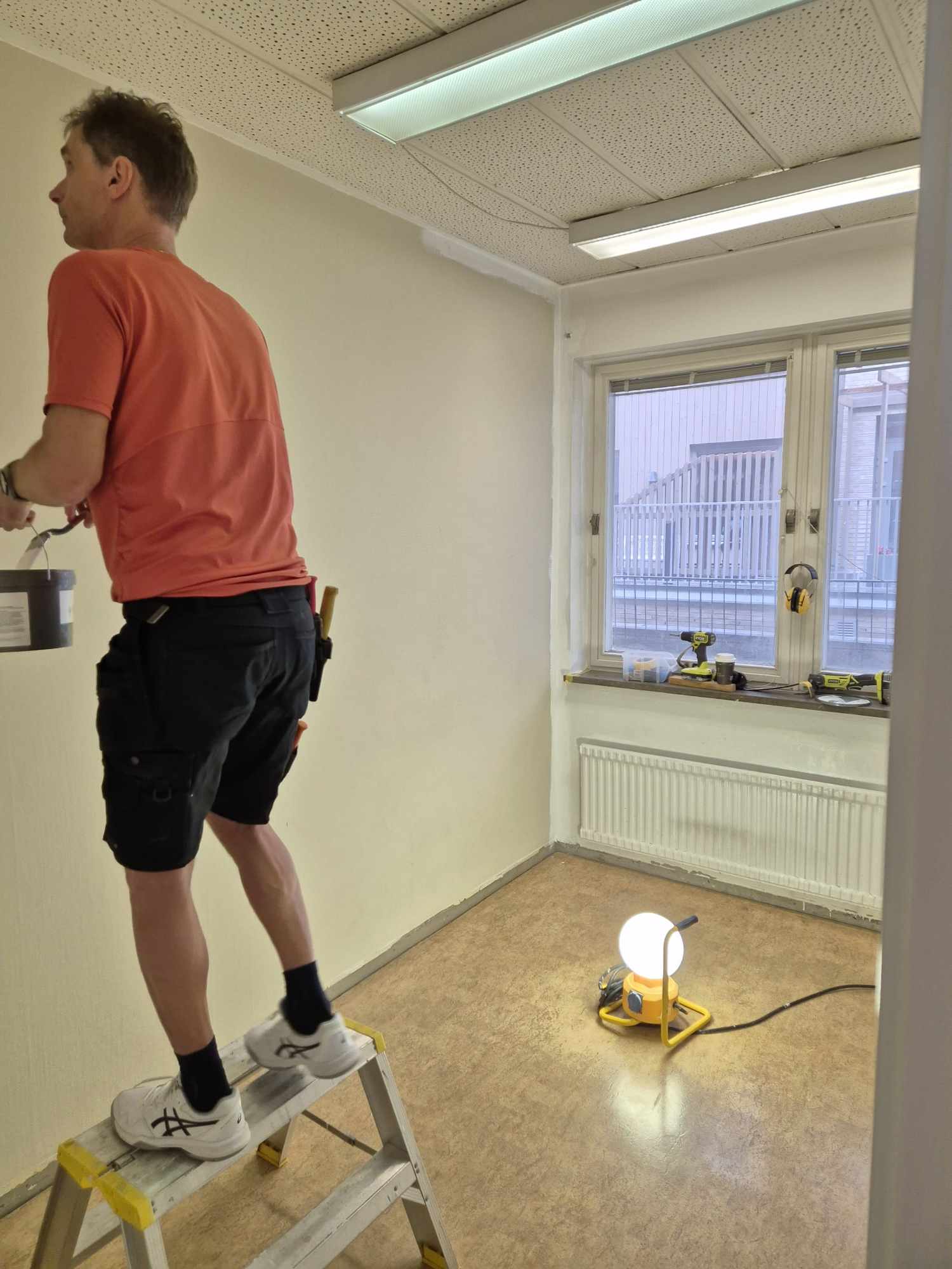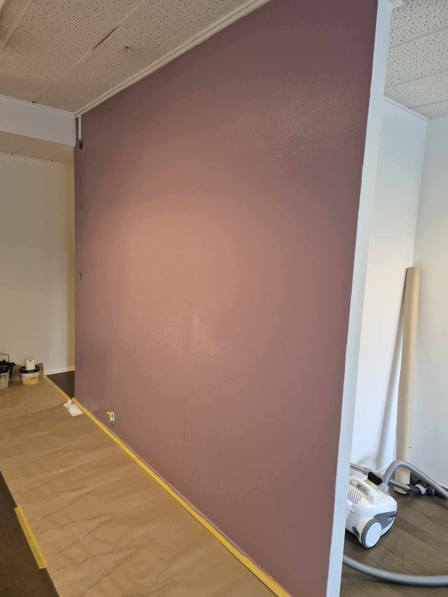 Min sambo som är utbildad snickare var genast med på noterna, trots att det var en hel del att renovera i lokalen, som bland annat väggen med fondtapet och ett golv + väggar i ett av rummen som behövde fixas till. Lister skulle målas vita, väggar skulle målas vita, fondvägg skulle målas lila, möbler skulle köpas in, fraktas från butiken och likaså hyrsläp med möbler hemifrån skulle ställas på plats i lokalen, whitboard skulle ner och likaså stolar + bord att sitta vid under kurshelgerna, soffa, soffbord, köksbord, stolar, massagefåtölj, byrå och mattor. Jag och sambon slet hela sommaren med detta och inte vart det billigt heller med hyrsläp, flytthjälp med mer. Men tills lut, efter sju veckor slit så vart v i ändå så gott som, klara.