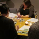 Pehr inledde kursen med att gå igenom den stora Arkanan och förklara den för oss, sedan fortsatte han med alla sviterna svärd, page, mynt och bägare. När detta vart klart tog vi en fika paus, minglade och lärde känna varandra lite mer. Sedan var det dags för alla de olika Tarot läggningarna.